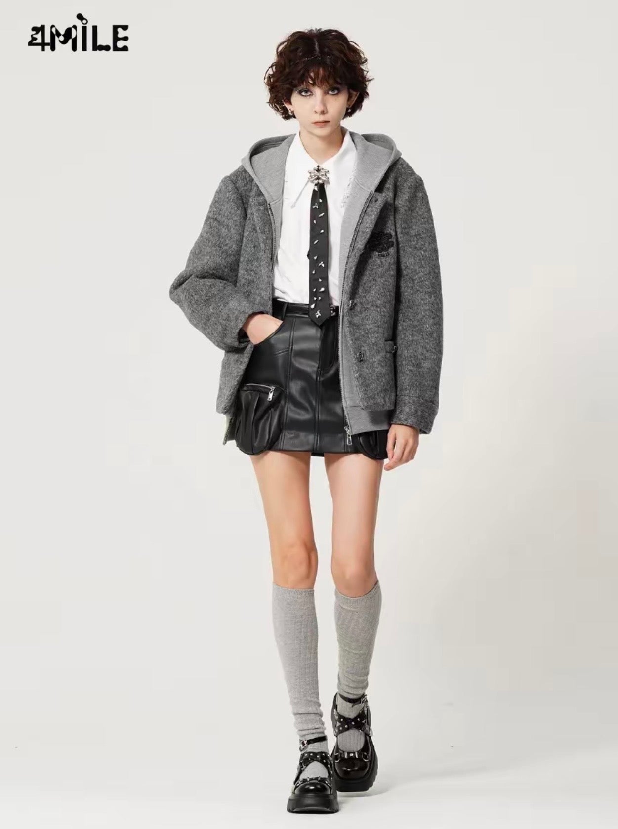4MILE Retro 3D Double Pocket Disruptive Leather Jacket Down Jacket Maillard Leather Coat