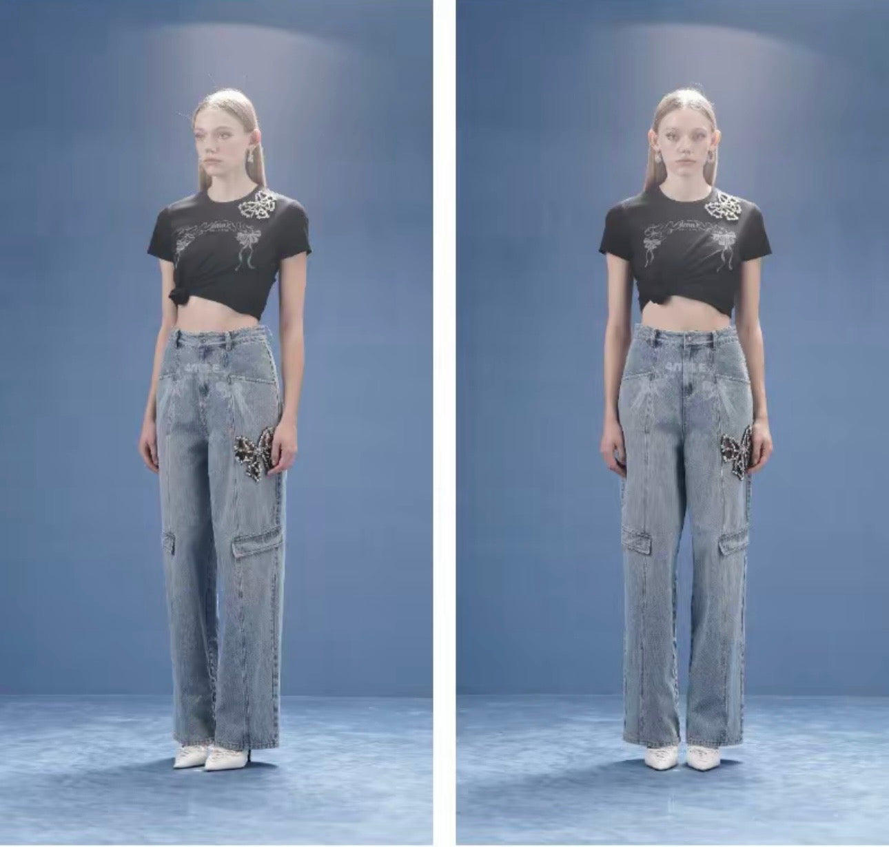 4MILE Spring/Summer New Arrival Black Round Neck Hand-stitched Rhinestone Bow Logo Print T-Shirt Short Slim Fit Short Sleeve