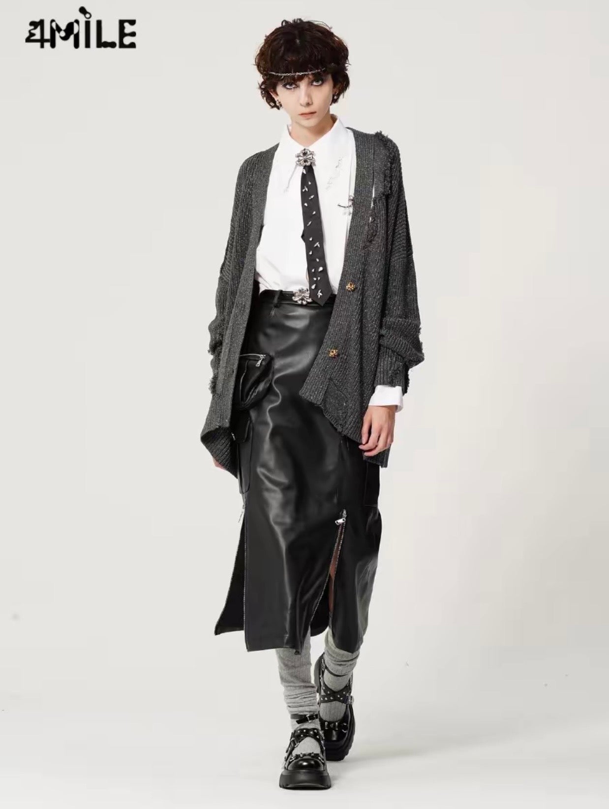 4MILE亮丝深灰破坏主义针织开衫时髦宽松慵懒风设计师毛衣外套