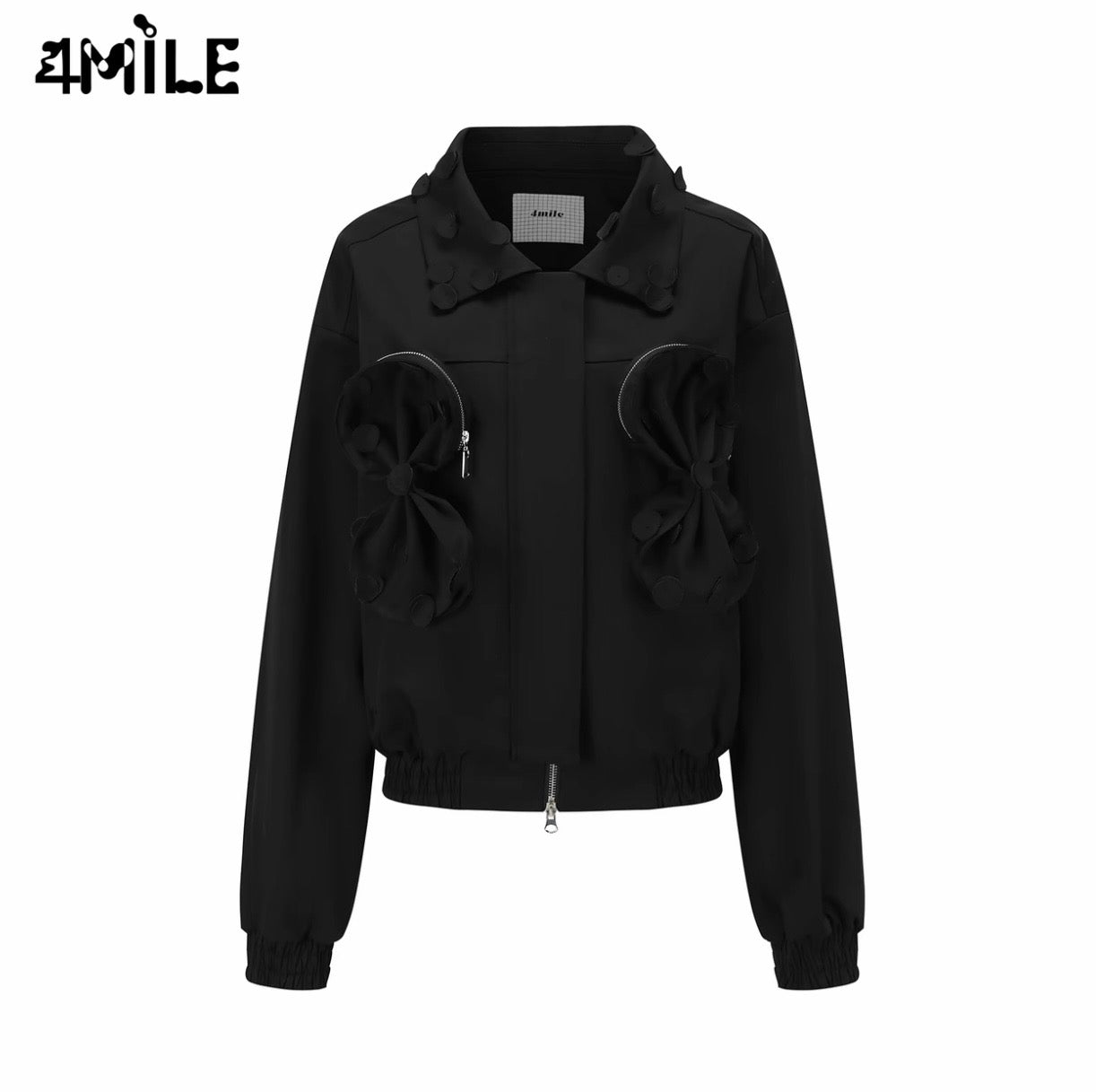 4MILE春夏新款波点蝴蝶结口袋夹克时尚运动设计师宽松上衣女外套